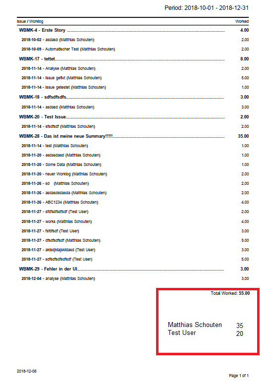 We need a summary of the logged time for each user on the bottom of the page, as it was in the old version. Image attached.