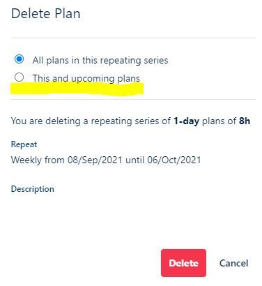 In Tempo planner it is possible to create a recurring series, but if you change something you can change the whole series or the part of the series in the future. but you can not keep the recurring series and just delete/change one entry.