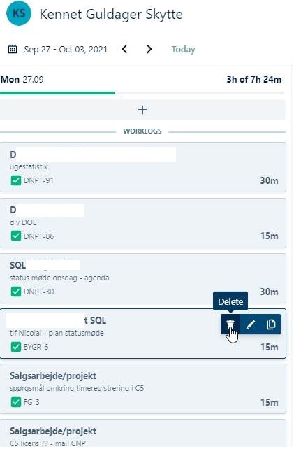 in timesheet when logging time in the list view the delete button is VERY close the the edit button, so it happens often that you delete rather then edit log. Adding an addition delete validation would help with this. or perhaps addin a log of what has been deleted.
