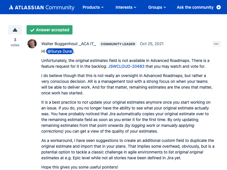 Updating the Original estimate for each task is a time consuming process for all our users and Jira plans is an easier and quicker way to do it.