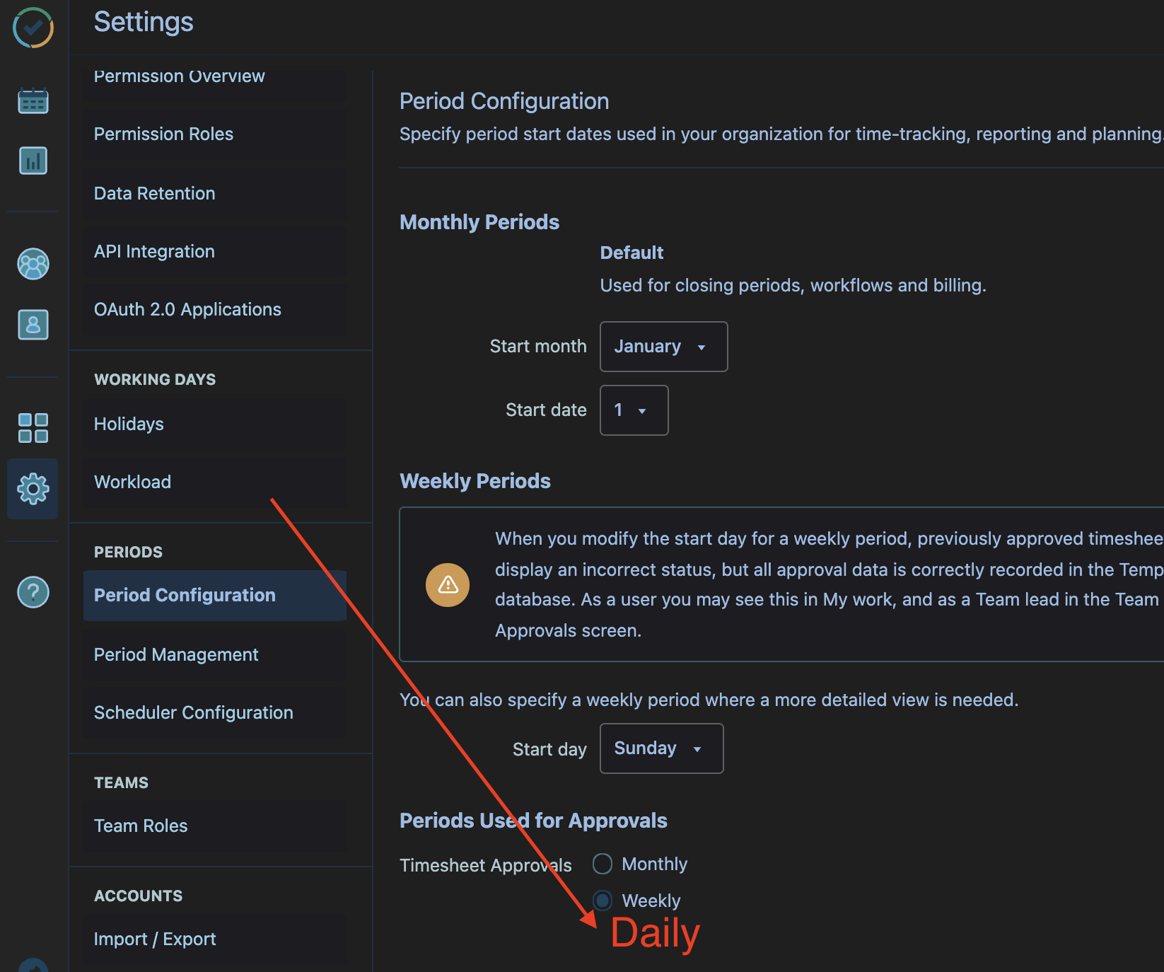 Therefore, we'd like to have an option to submit the time on a daily basis.