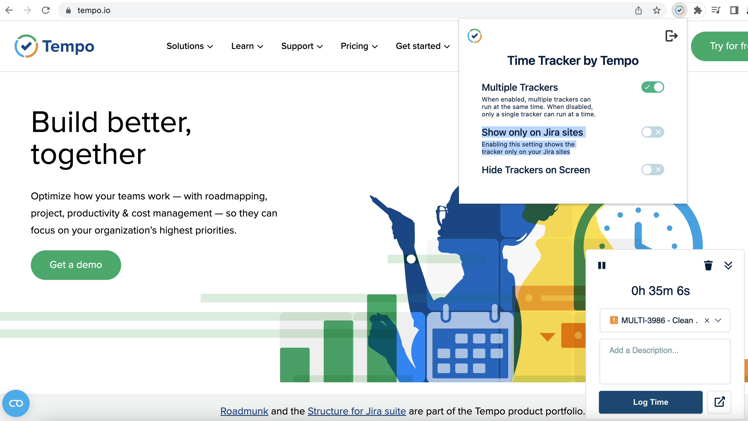 Hi Everyone - We've shipped the extension with a new configuration to display across all URLs or only across Jira URLs. This is available in the latest version of the Chrome Extension (v2.x) - do try it out! Refer screenshot below showing tracker on our public website and the configuration to show trackers outside of Jira sites.