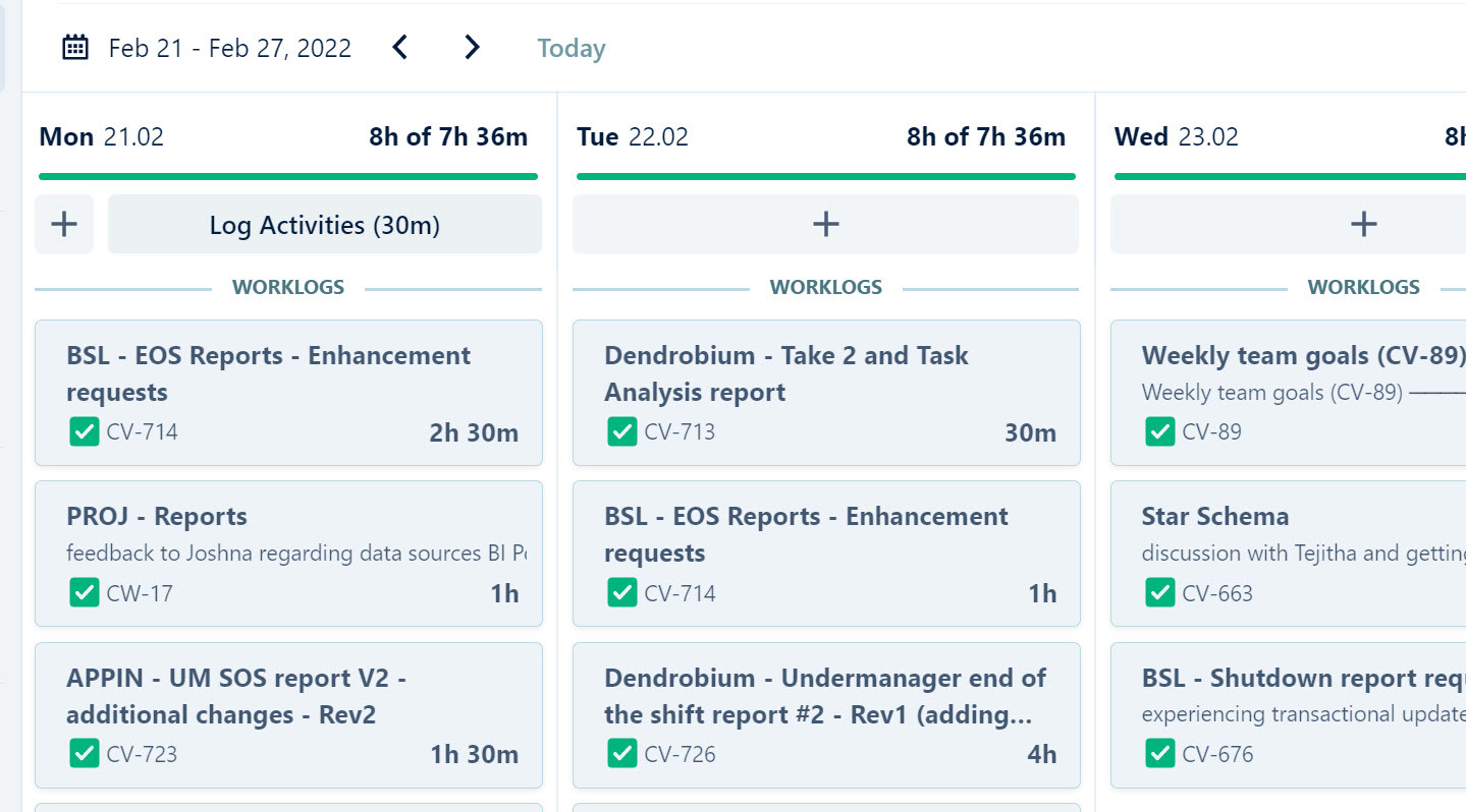 The list view is a great way to track all activities completed in the week. However, this loses in clarity when comments are not displayed.