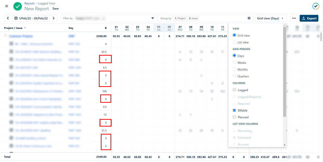 We want to give a PDF export of the tempo report to our customers to show them where we have spent the time for, and they should not see the issues without billable hours, because they are project related, but for internal purpose only.