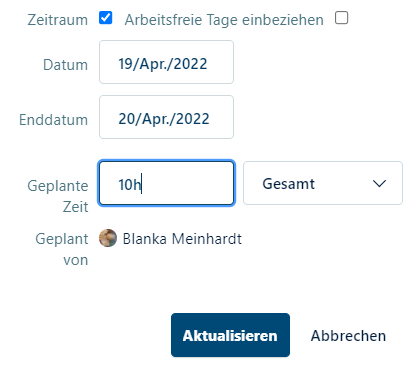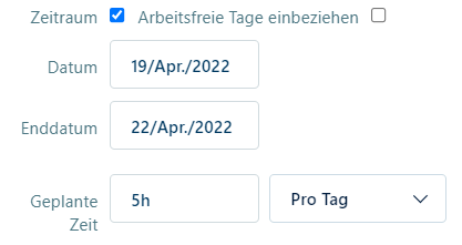 Now when I change the duration from 2 to 4 days the overall number of hours in automatically increased from 10 to 20, but I would like the overall effort of 10 hours to be fixed and therefore the effort per day should be automatically decreased per day, if the time period is extended from 2 to 4 days. Thus, overall it would be still 10 hours of effort.