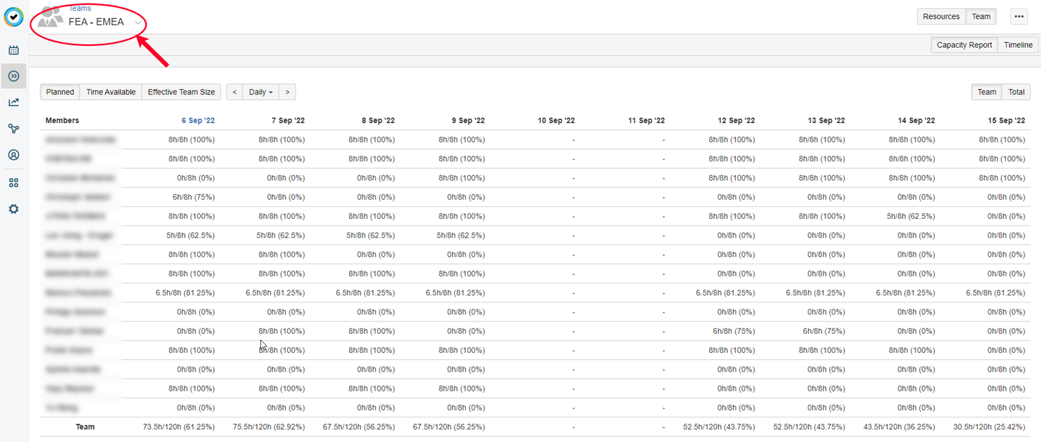 Implementation a multiple selection function so that the user has the option of displaying several Teams together in one capacity report.