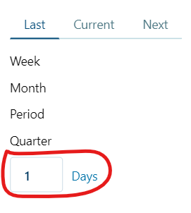 But in order to select the current day (“Today”), for some reason you need to go to the “Previous” tab and select 1 day there (although, according to the logic of the other points, this should not be “previous” at all):