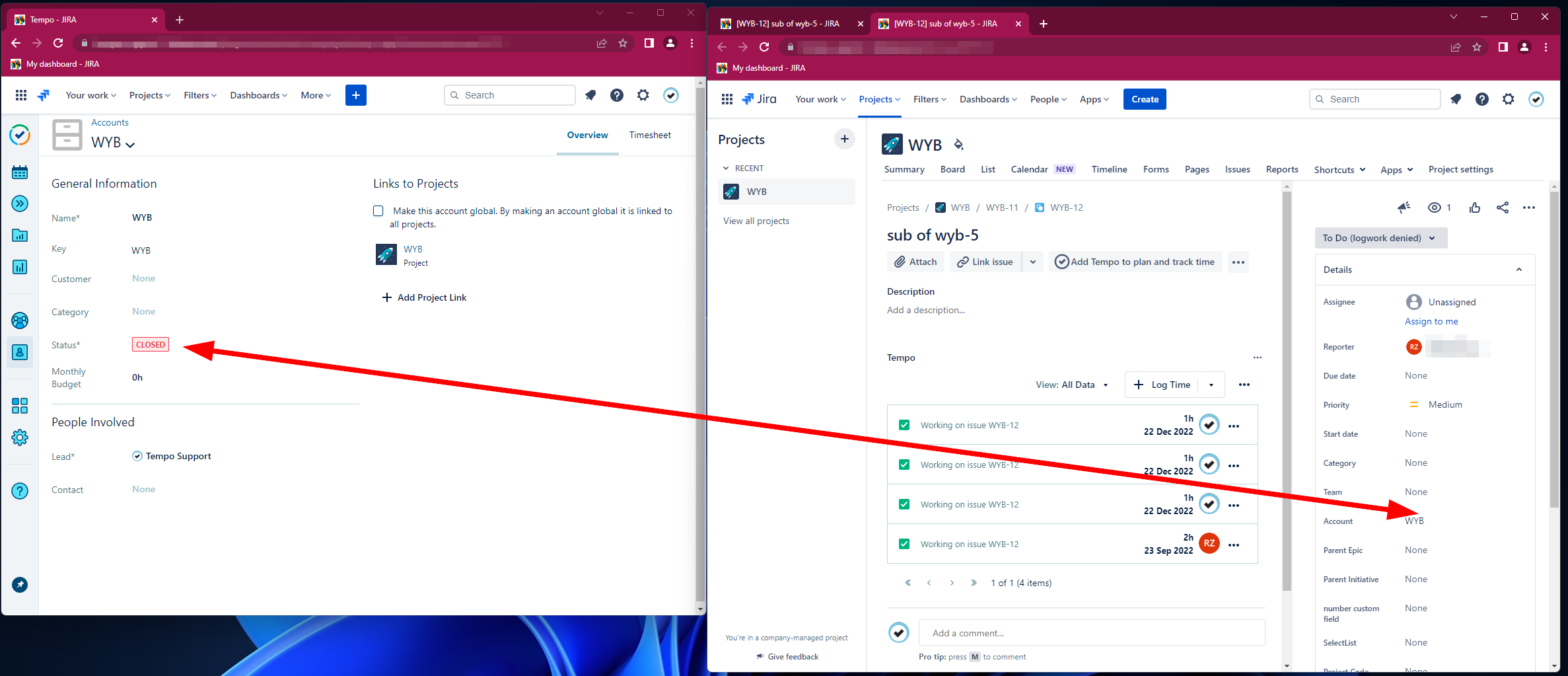 So as to avoid any confusion, could the status of a linked account be reflected on the issue settings page.