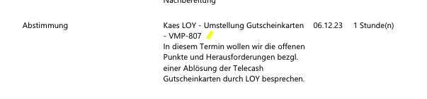 User would like the ability to use the outlook calender entries to enter in the timesheet. Per default Tempo Timesheets uses the first 100 characters of the outlook entry. They would like for it to be possible to use a special character in the outlook entry to cut off the part of the outlook entry which they don’t want to use in the timesheet entry?