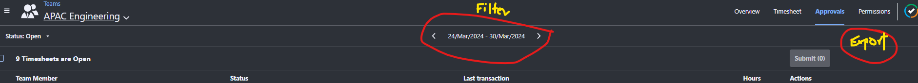 We do have an existing feature for extracting logs for Team Approvals status, which can be done through raw data export. However, it will be much more helpful if the export feature can be enabled at the Teams level with Week/Monthly filter options.