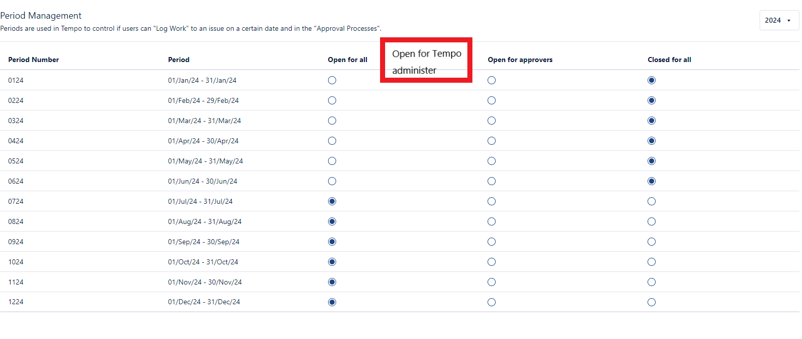 For opening monthly period, can you add a option just for Tempo administer to edit/move/delete all Tempo users worklogs?