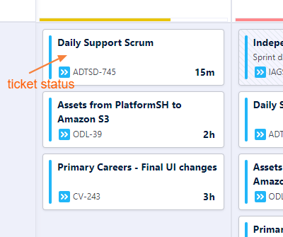 We use the Resource Day planning view to plan our staff's work. It would be incredibly useful if we could see the current status of the ticket in this view i.e. in progress, resolved etc