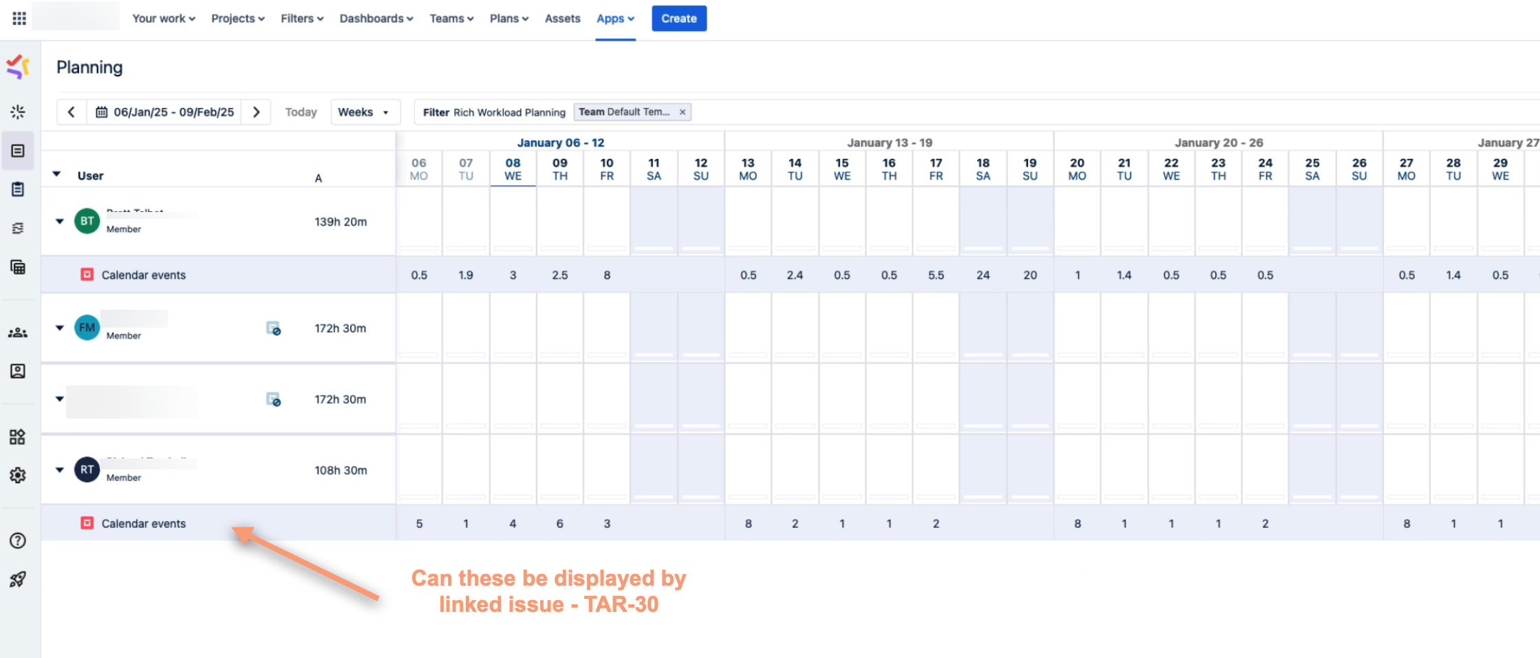 This only shows as a single line 'Calendar Events' in the Tempo Planner.