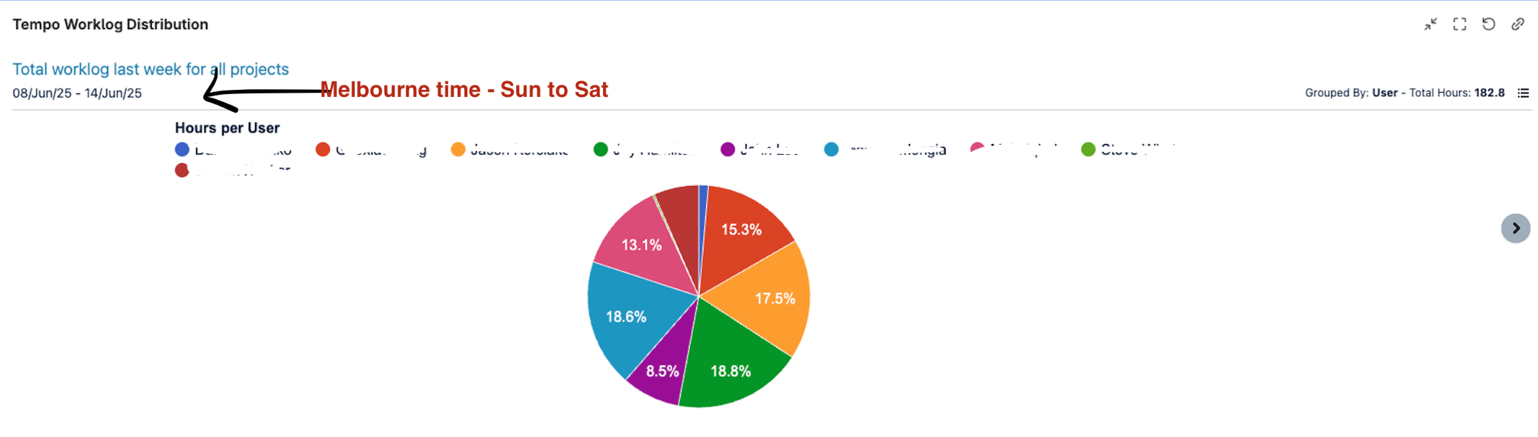 Currently, the Worklog Distribution gadget in Tempo is fixed to a Sunday–Saturday weekly range, which cannot be changed or configured.