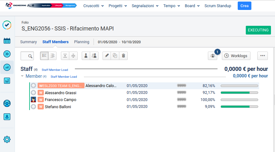 A cost rate manager instead will see the same section with salary detail for every staff members.