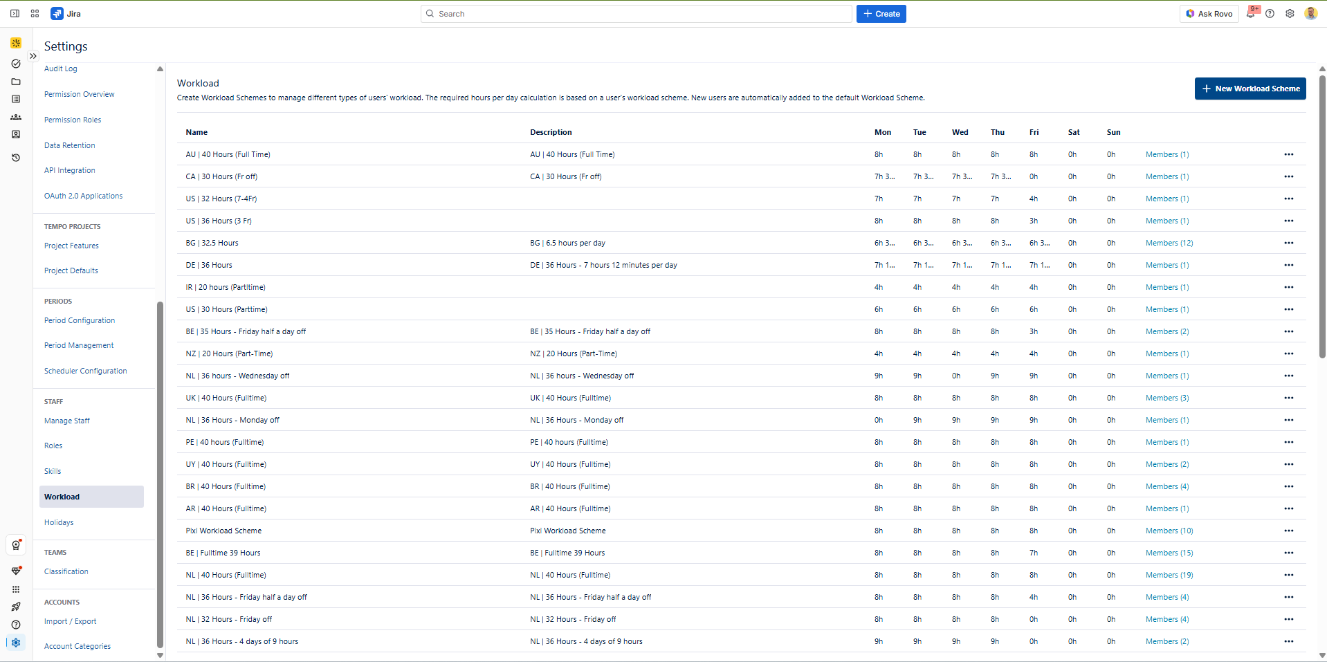It would be easier to use when the overview would be alphabetically sorted on the names of the workload/holiday schemes.