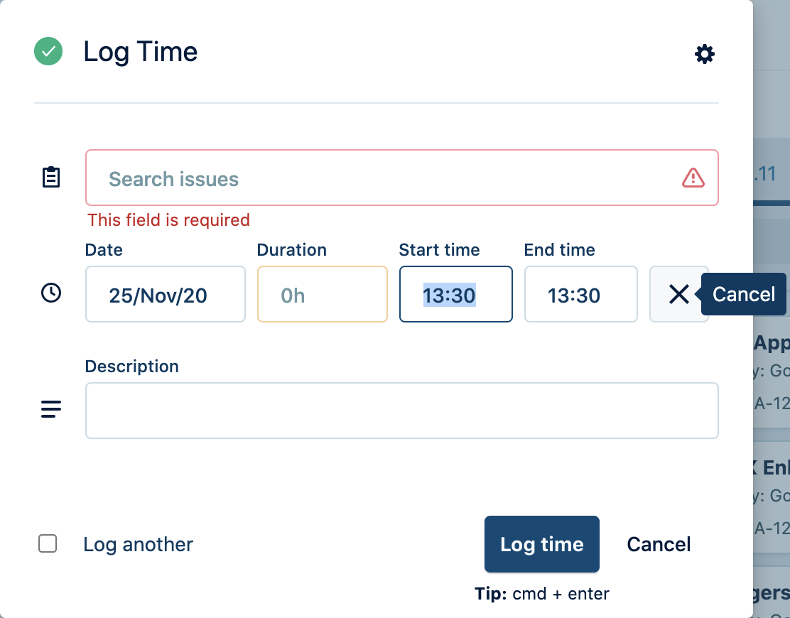 It's neccessary have the option to hide Set start and ent time from the Log Time pop-up windows UI because cause many confusion when the users put time beacuse they put more hours than should be and make a huge amont of work in the financial team auditing that.