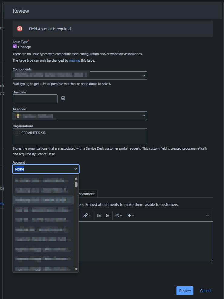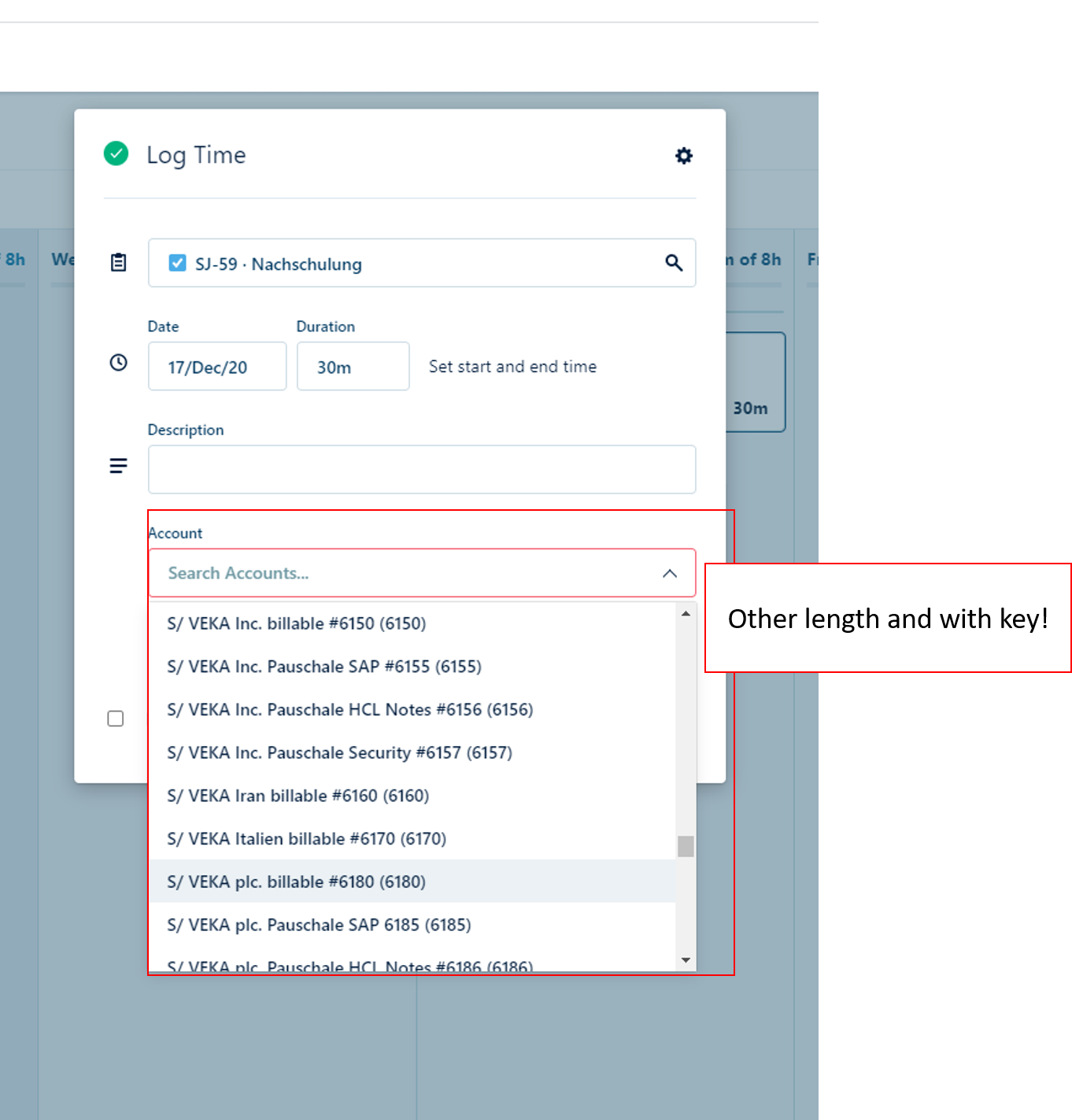 We use Server version and Account keys are pretty long (external system id), so that we simply cannot see the Account name in the Search Account field.