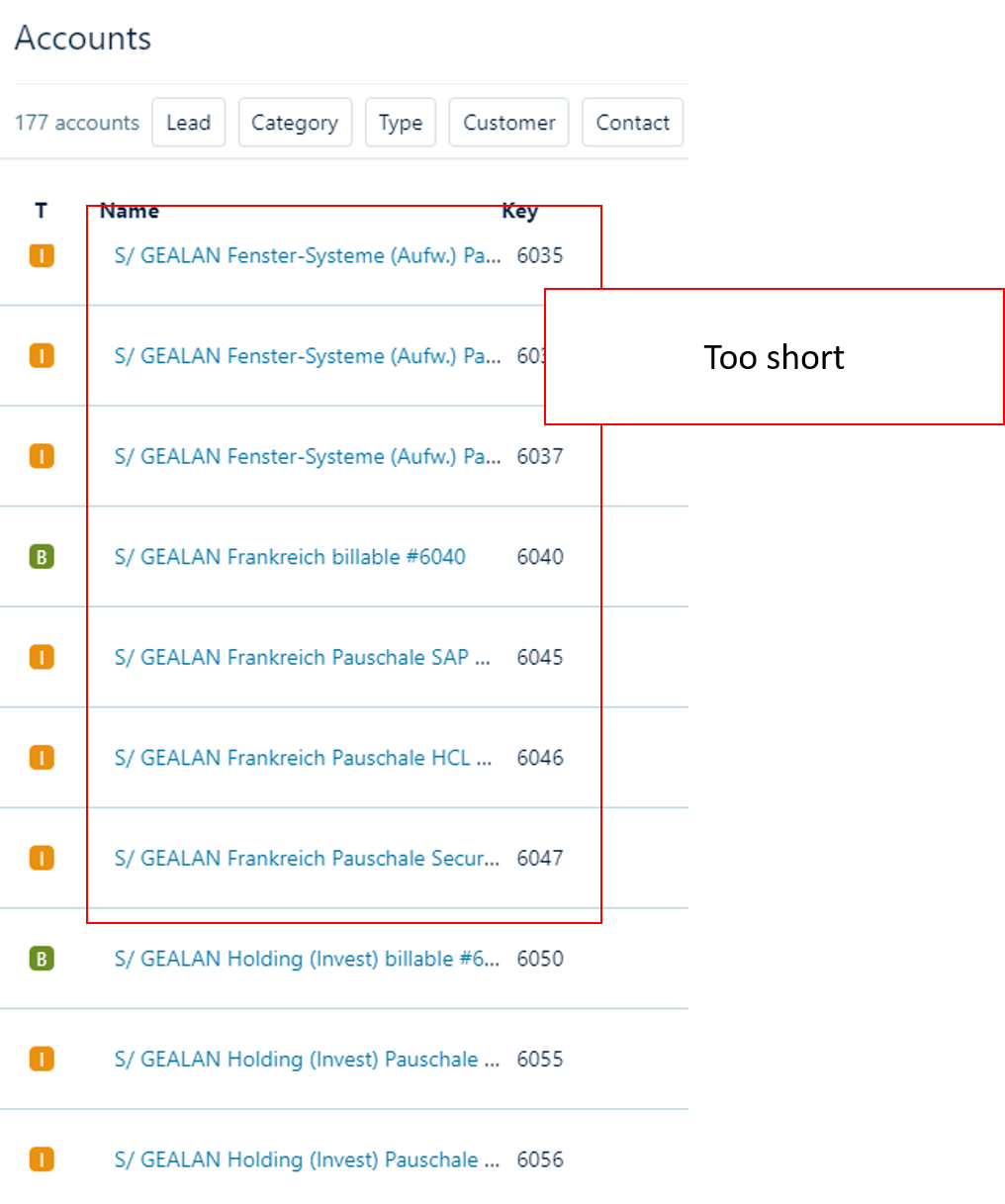 We have the problem that there is no standard length of the account field. When we create a task, the field is too short and the key is not displayed. The account name cannot be read.