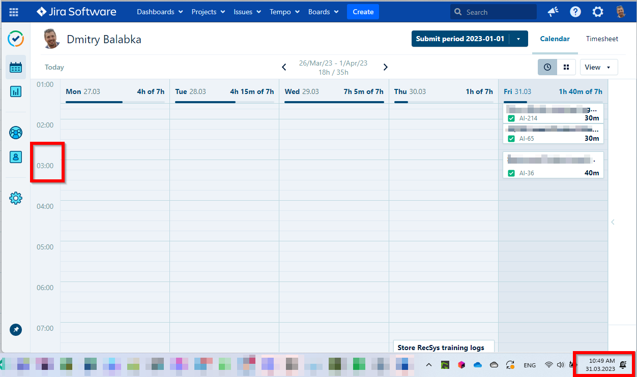 I’m using “Log work“ to log my time. I noticed that the logged time appears in the wrong place on time table in "My Work -> Time view". It looks like the Time Log appears in “Central Daylight Time“ server time zone instead of my local “Europe/Riga“ time zone. (see the screenshot)