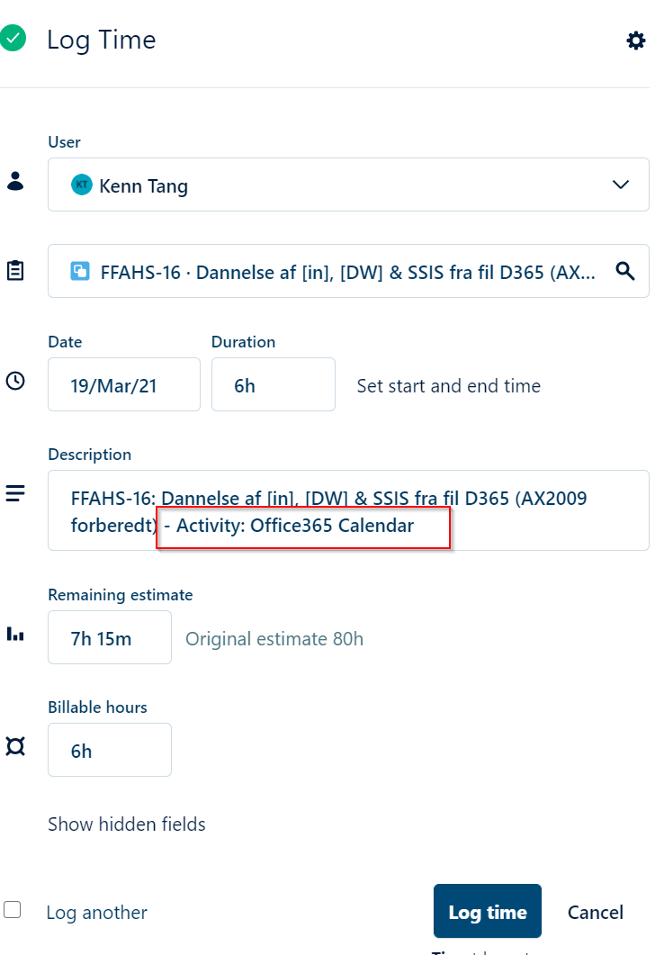 For us, the text in calendar description is either “Hello folks, hope you’re all doing well…”, “Join Microsoft Teams Meeting….” or a wall of text much too long for being useful as a log description. Thankfully it can be deleted, but having to delete it for each log entry really doesn’t sound very usable.