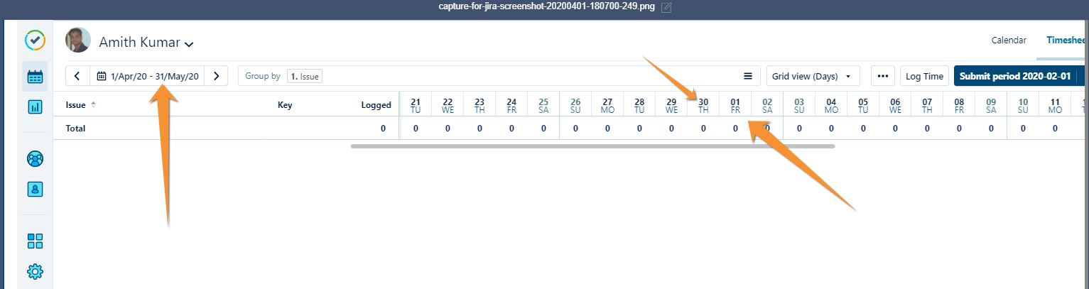 When selecting a timeperiod for more than a month, the grid shows only the date and day, but not th month. Therefore, it is really difficult to understand when a month has ended or started.