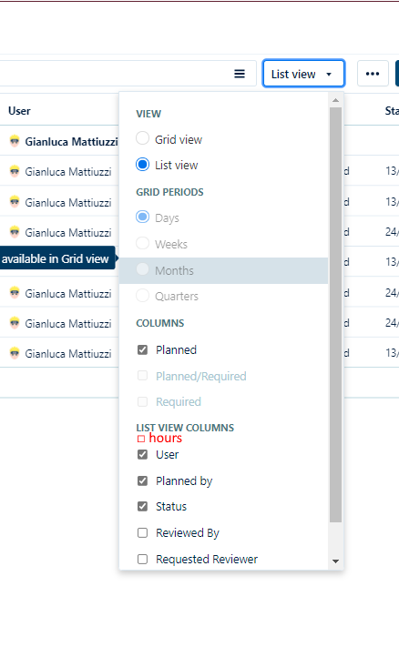 When I create a plan report a can't see the hours (from -> to), but only the data.